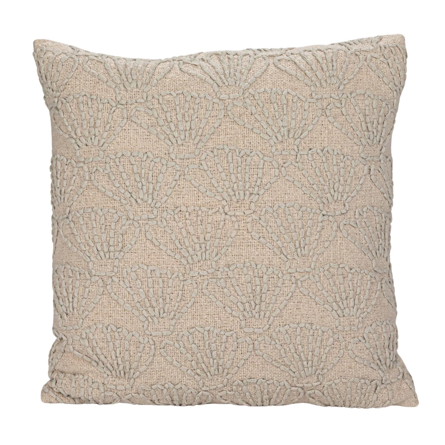 Square Cotton & Linen Pillow w/ Shell Pattern 20"