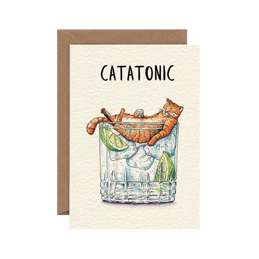 We all know a cat like this one…. stretched out, fast asleep and not moving for anyone… It’s a tough life when not even a G&T can rouse you from your slumber! A popular card with cat and gin lovers!