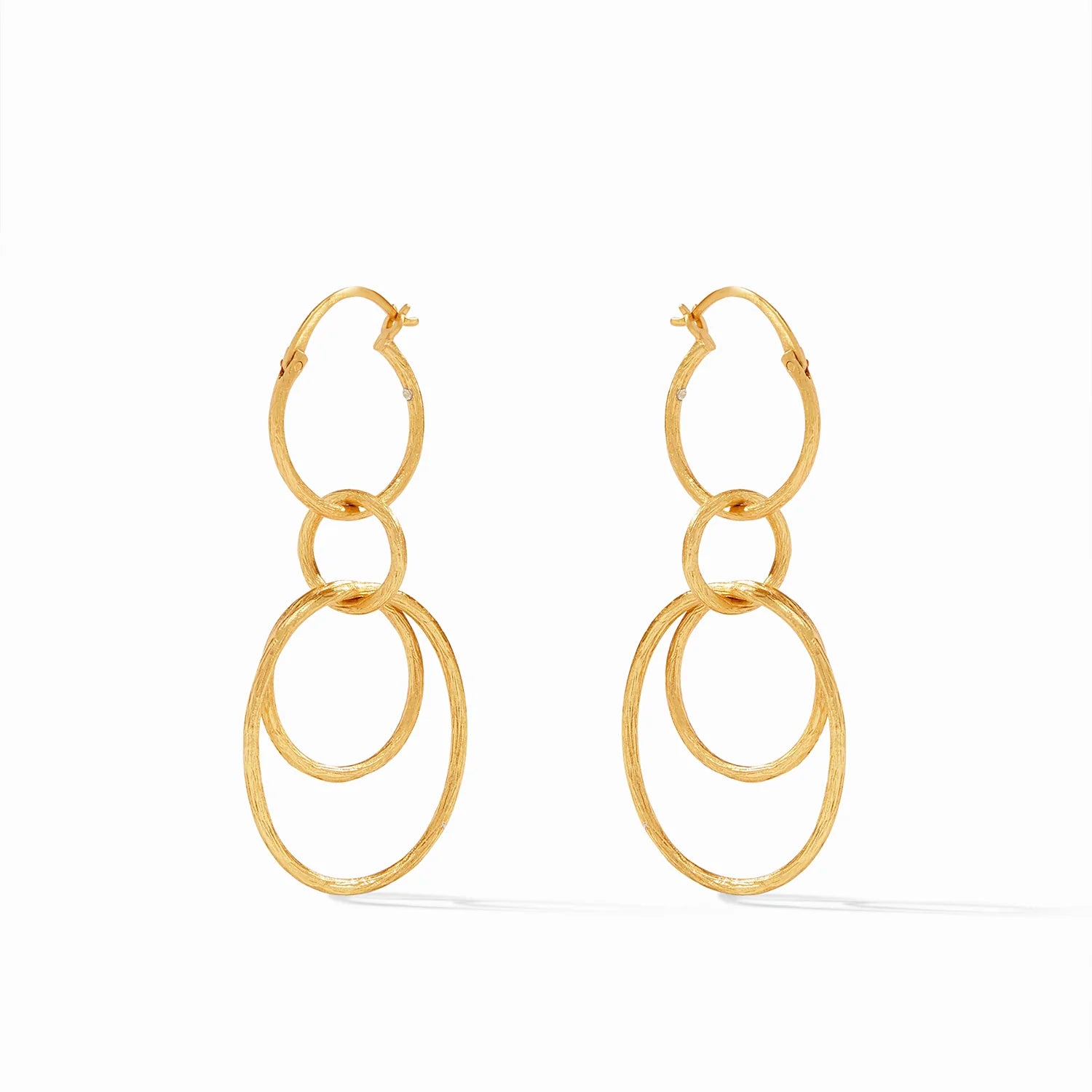 Elegantly scored shimmering 3-in-1 earring that can be worn as a single, double, or triple hoop.