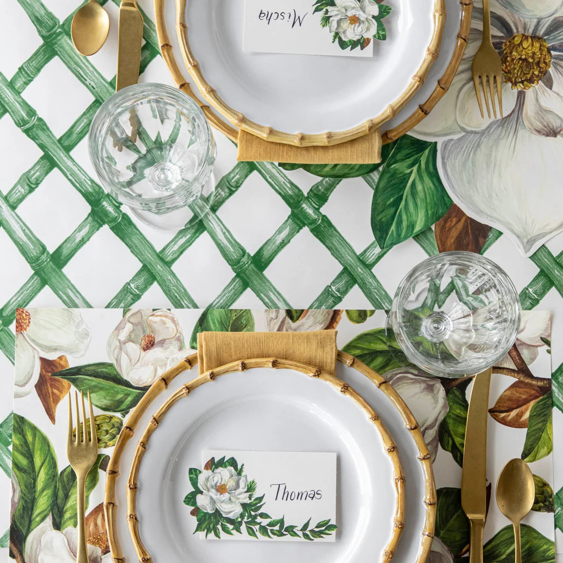 Our classic lattice pattern is now available in a gorgeous green, the perfect backdrop for year-round celebrations indoors and out. Drawing inspiration from garden trellises and pastoral scenes, this timeless pattern is a great compliment to both elegant and casual gatherings.