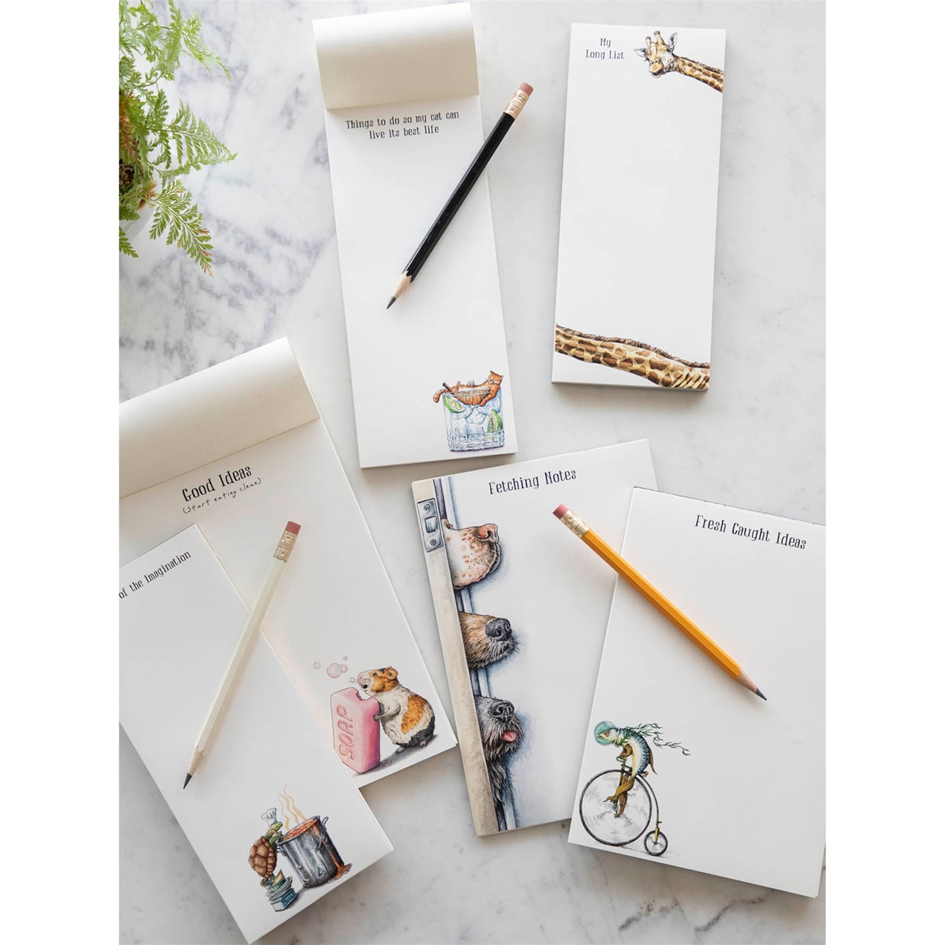 In collaboration with Bewilderbeest, our notepads are both practical and humorous. This “Proudly Absurd” brand based in the UK delights recipients with animal illustrations featuring cheeky and witty phrases.