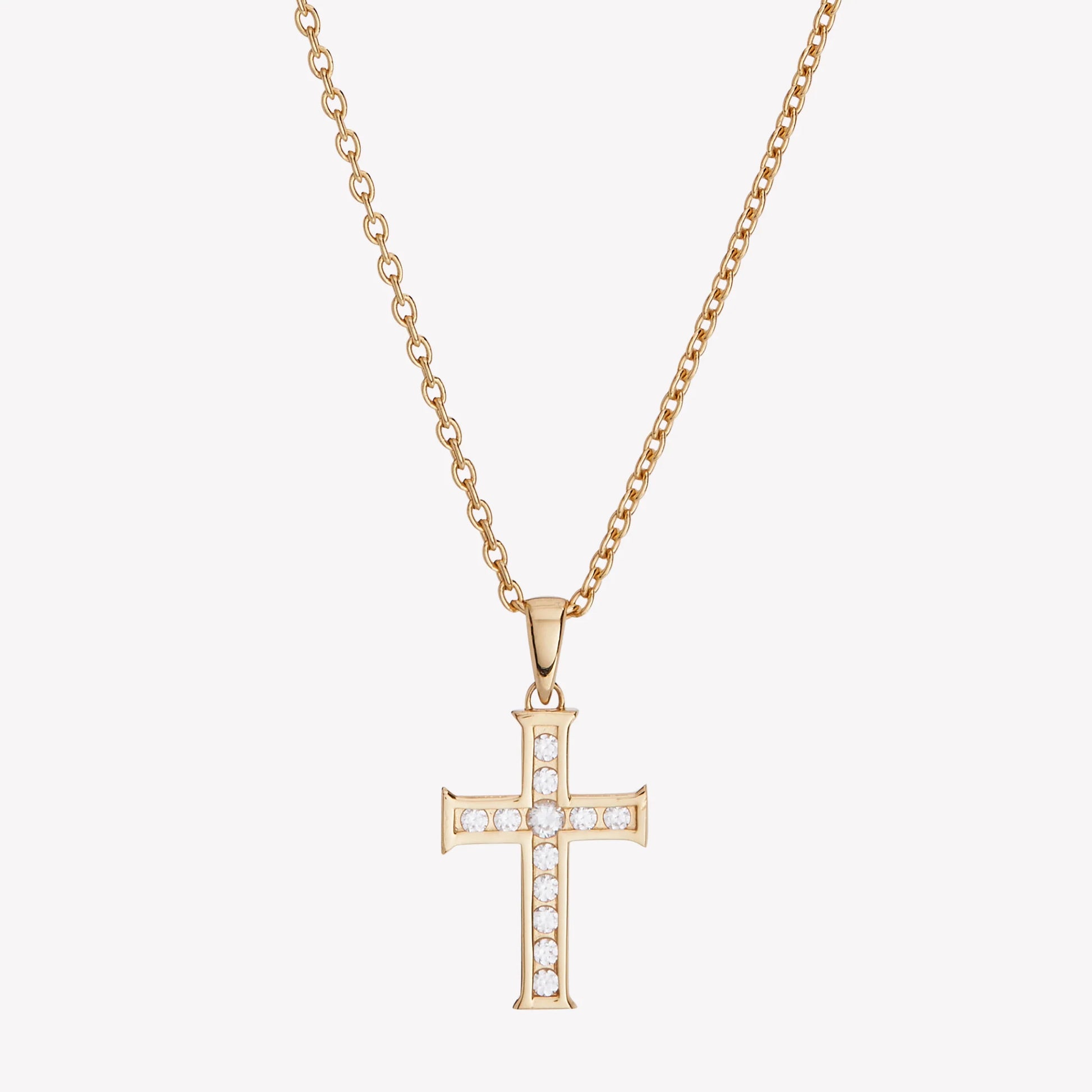 Gold vermeil or sterling silver necklace featuring a sparkling cubic zirconia cross pendant, set on an adjustable 20" cable chain. necklace featuring a sparkling cubic zirconia cross pendant, set on an adjustable 20" cable chain.