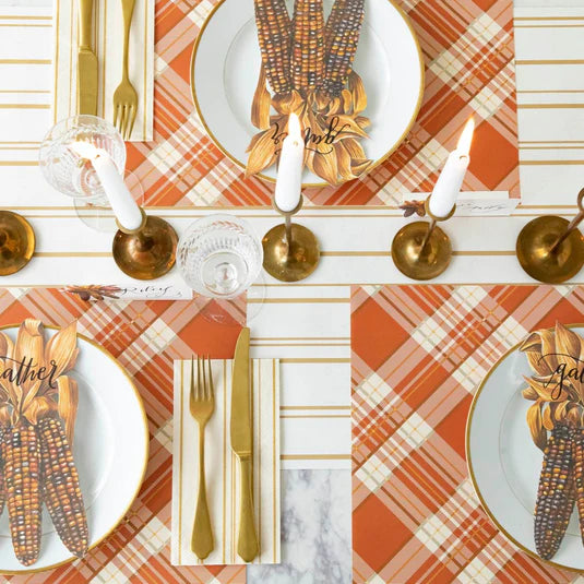 Kick off the holiday season with the Orange Plaid Placemat. Its' rich tones are designed to layer with your fall decor. Pair these placemats with our Orange Plaid Runner to complete the look.