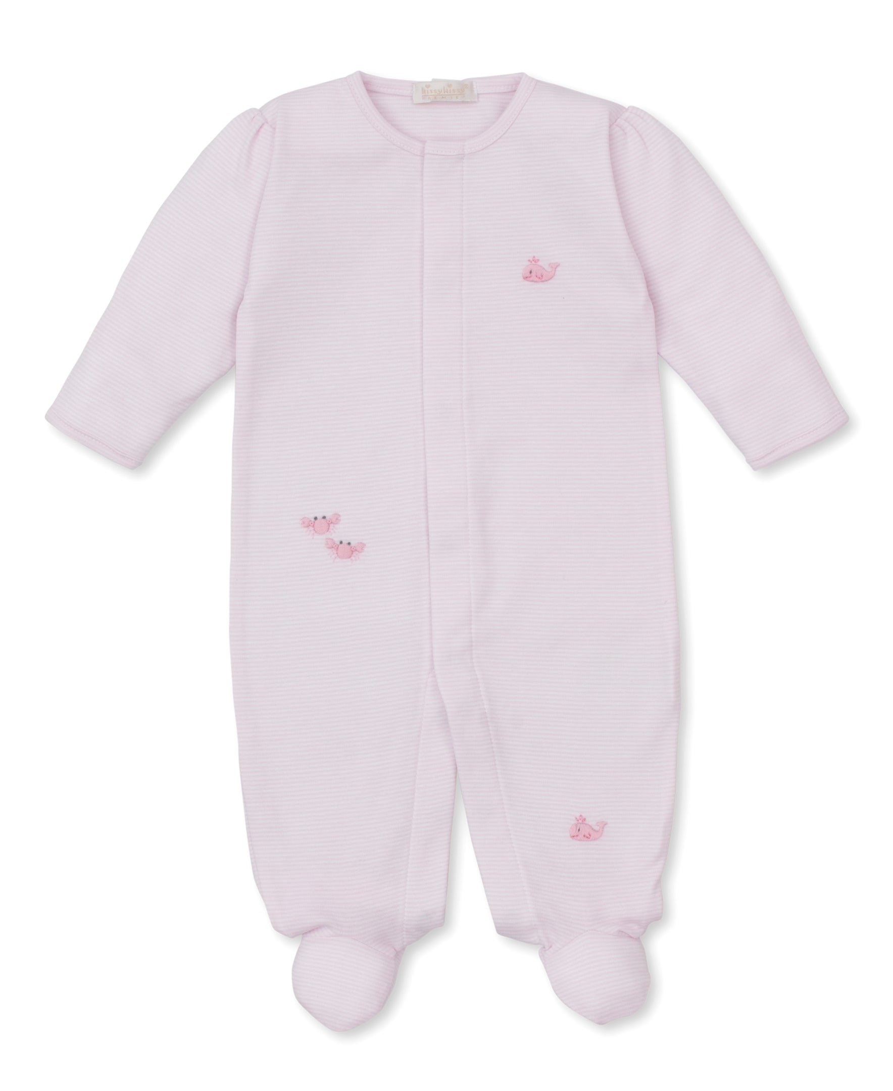 Pink Footie w/ Hand Emb Str - SCE Crabs & Whales