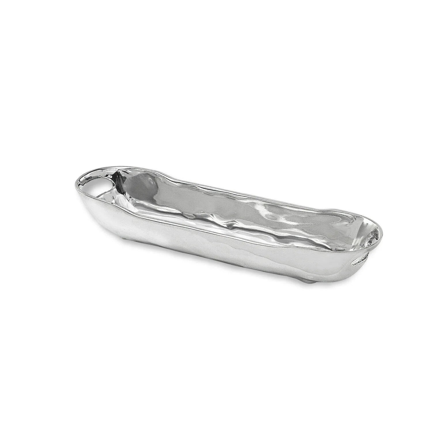 Entertain in style! If you love to entertain with flair, the Soho Cracker Tray with Handles is an elegantly simple solution to serve your favorite crackers or small bites with panache. From our gift collection featuring handmade and artfully designed items at irresistible prices. Packaged in a lovely gift box, you'll love this elegant and versatile cracker tray in one of our bestselling styles. Made of an FDA safe, easy-care, oven and freezer friendly aluminum alloy.
