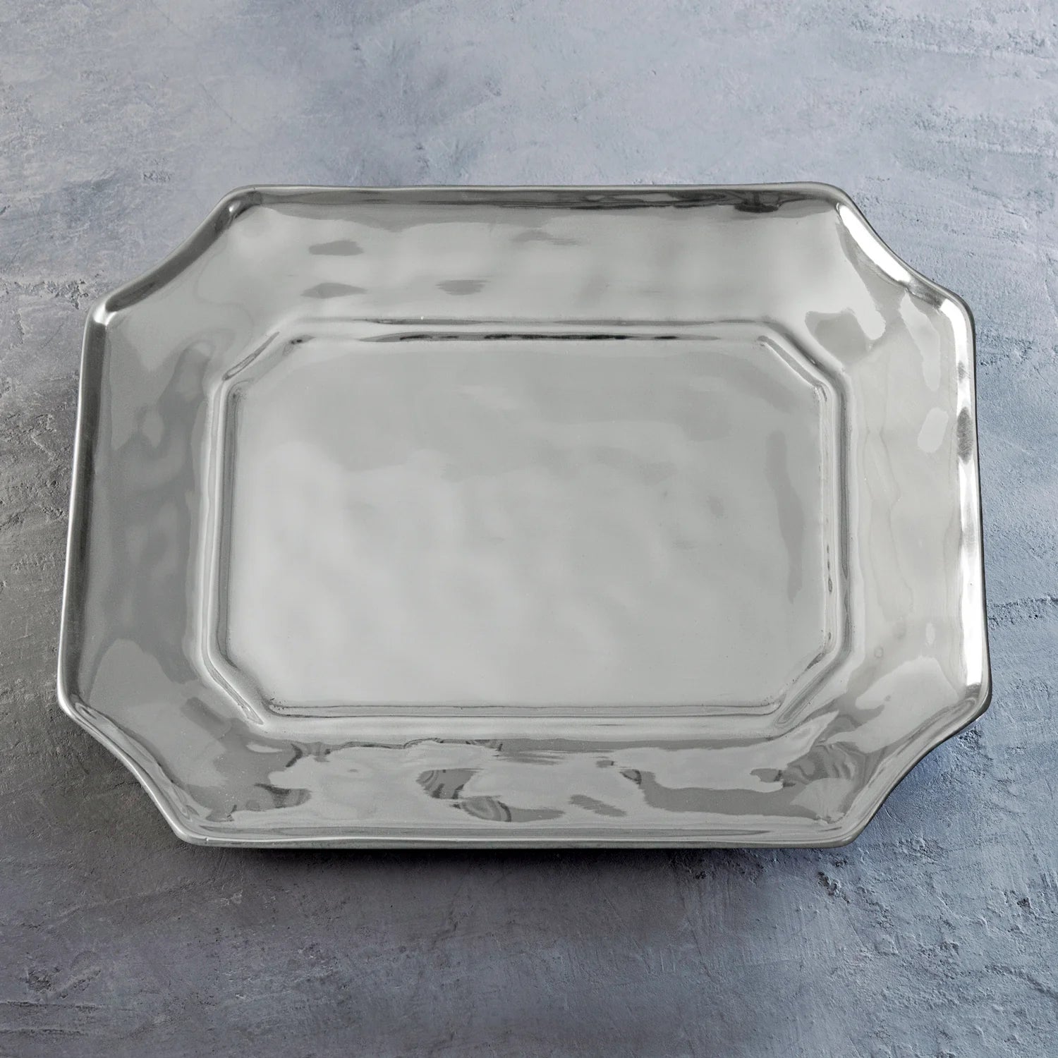 The Soho Lucca Rectangular Decorative tray makes a perfect gift, handy metal serving tray, or eye-catching accent piece. From our Gift Collection; handmade and artfully designed items at irresistible prices. Packaged in a lovely gift box! Anyone on your gift list would love to receive this elegant and versatile gift tray with distinctive Soho Lucca styling. A handsome, multifunctional piece featuring a hammered surface, notched corners, and a gently raised border, the tray is a contemporary take on a classic design. Use for serving cream cheese and pepper jelly, cookies, or canapés. Great for the vanity, or powder room, too! An original design and handmade of a top quality, FDA safe, easy-care, oven and freezer friendly aluminum alloy.