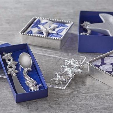 A trio of starfish cling to a smooth spreader for diving and dipping into sumptuous sea-fare. Part of our beloved Seaside collection.
