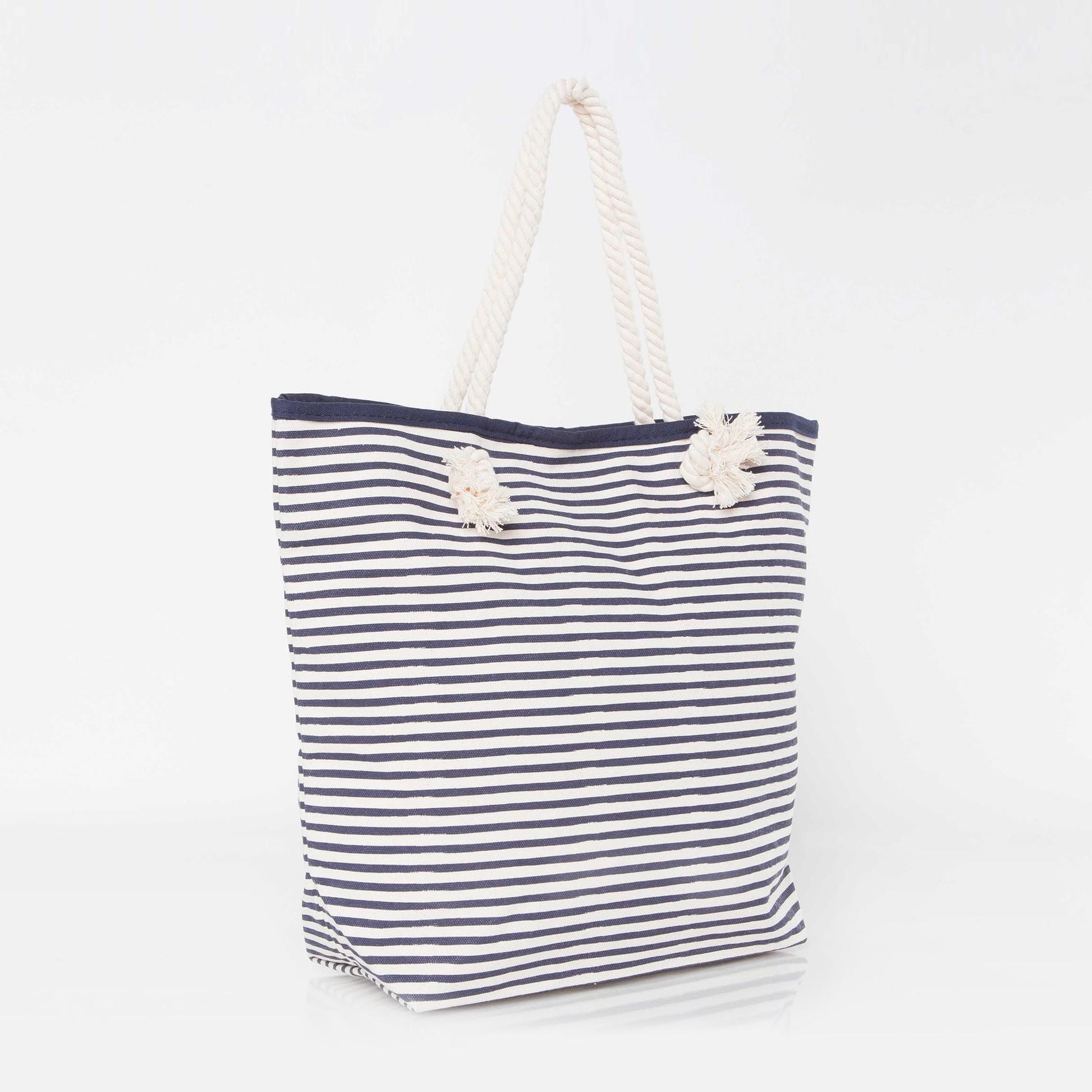 Perfect for running errands and monogramming, heading to the beach, or a impromptu gift bag, the Rope Tote is a beautifully constructed natural canvas tote bag with a printed striped pattern. Featuring classic construction and timeless knotted rope handles, this nautical inspired bag is one of our most popular giveaways among bridesmaids, teachers, moms and more! Consider personalizing it with a monogram for an even more thoughtful gift.