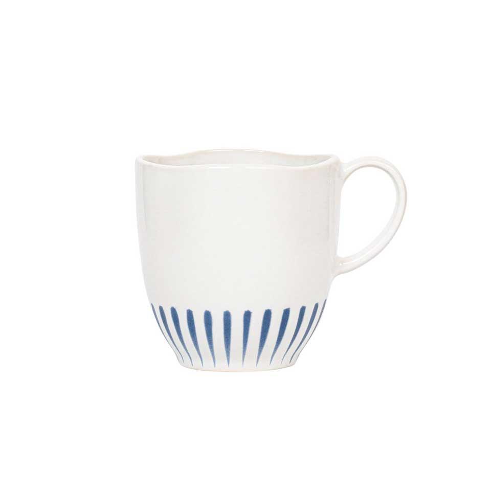 The fresh whitewash glaze and Delft blue stripes of this versatile mug exude potter's wheel charm you'll reach for time and time again, from morning coffee to tea and a good book.