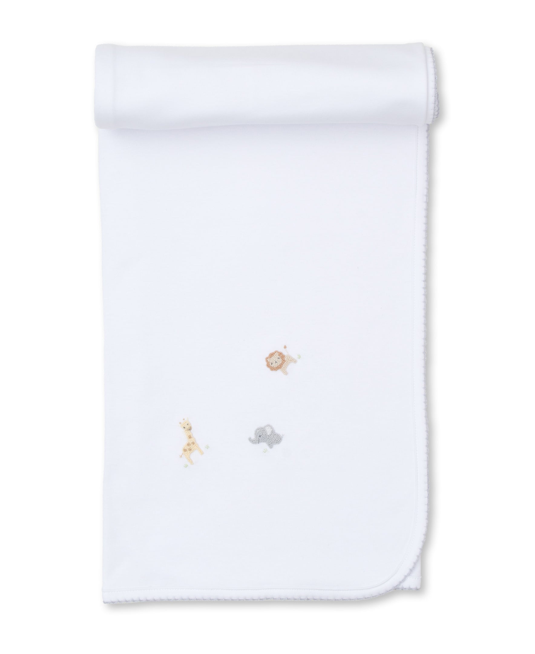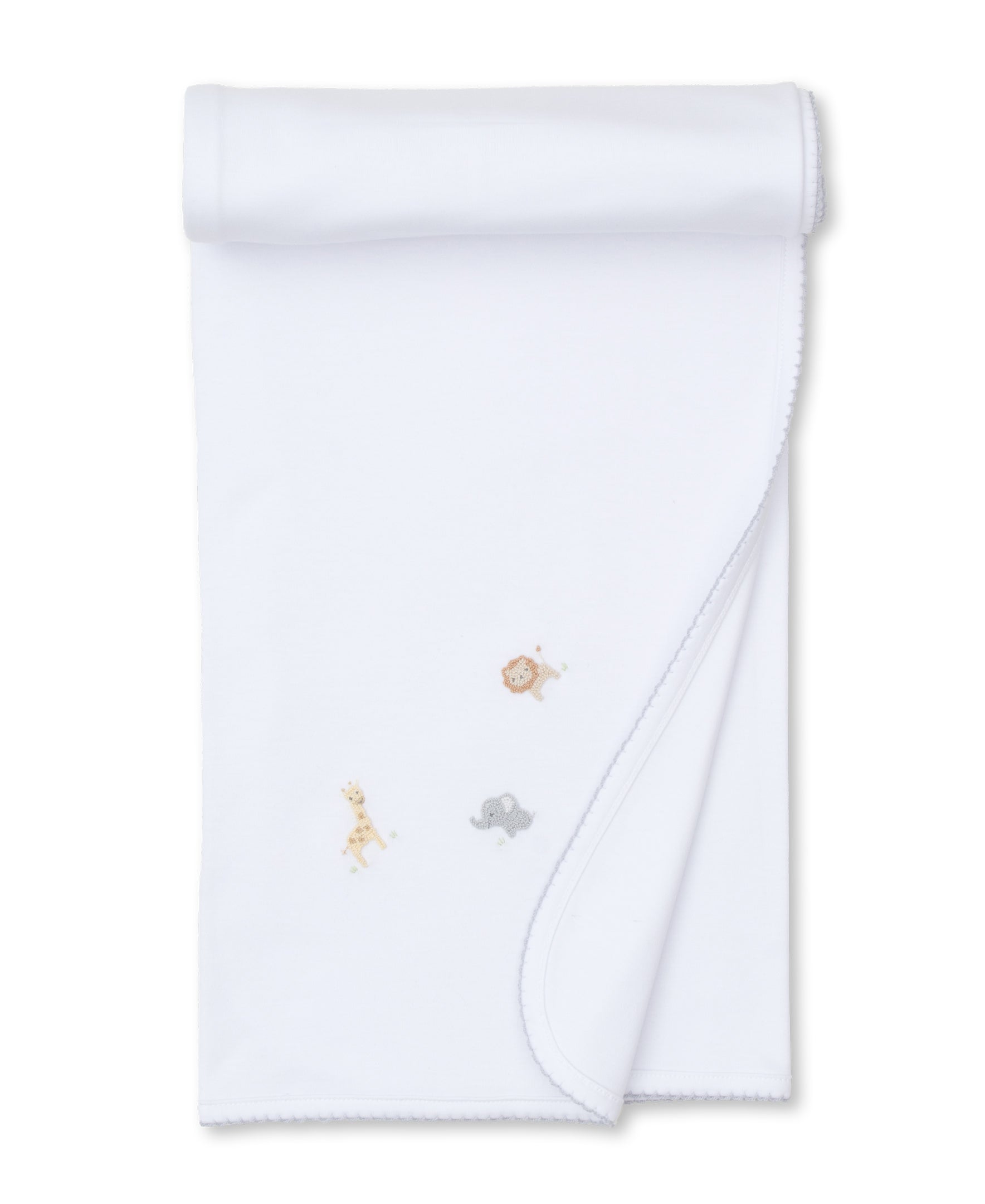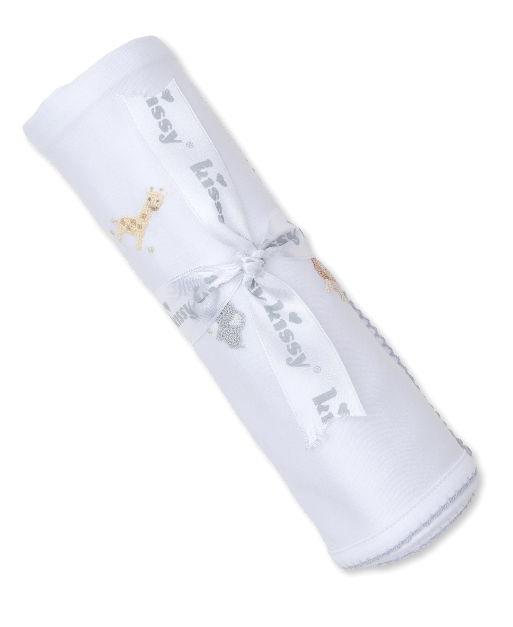 White and Silver Jungle Mates Hand Embroidered Blanket